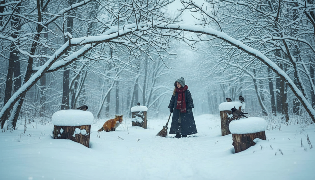 If you make that picture real, your old broom will no longer be a mess; instead, it will be a quiet piece of winter infrastructure for the animals outside your back door.
