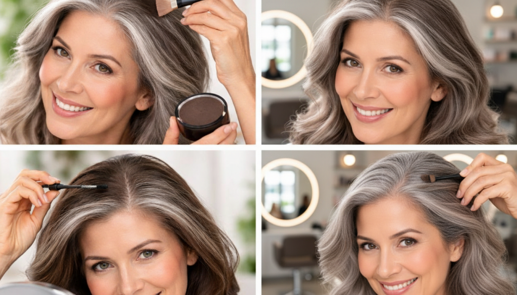 It’s still easy to keep up with daily maintenance. Once a week, use a light purple or blue shampoo to keep silver from turning yellow. A lightweight oil or shine serum can help wiry greys lie down more smoothly and reflect light instead of frizzing. For special events, tinted root sprays or powders can quickly soften the part and blend everything together like a secret filter effect.